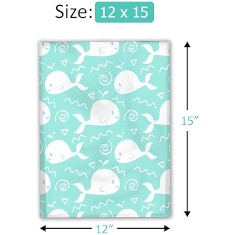 12×15 (50) Blue Whales Designer Poly Mailers Waterproof Self Sealing Tear Resistant Polymailers Shipping Envelopes Premium Printed Bags For Small Businesses