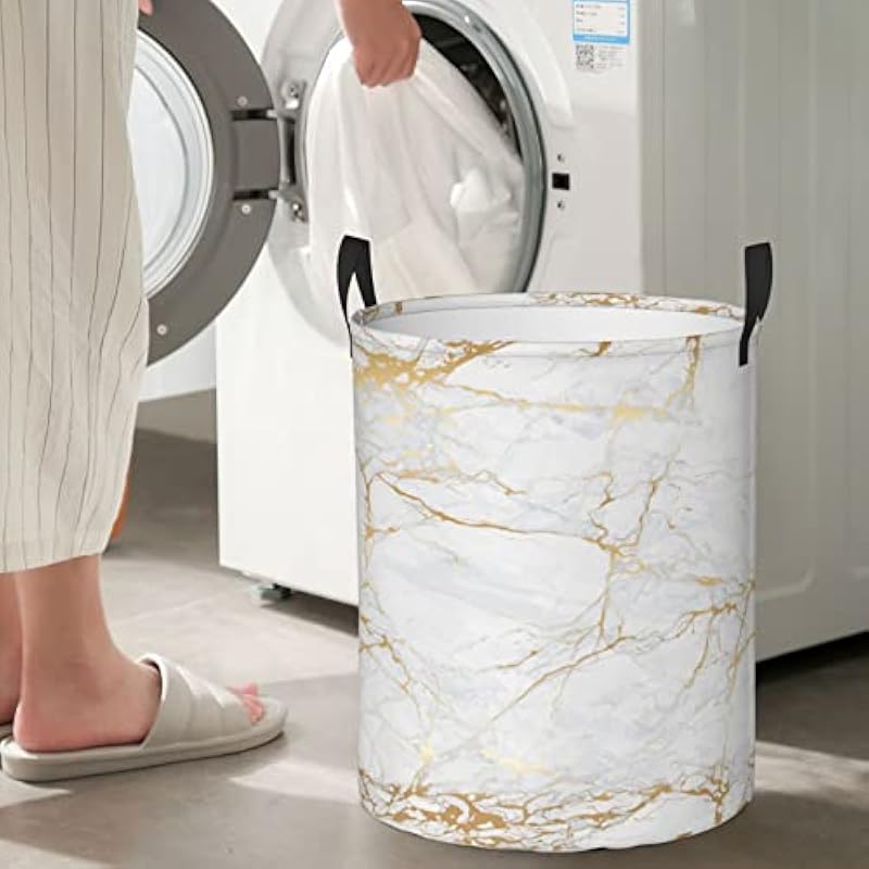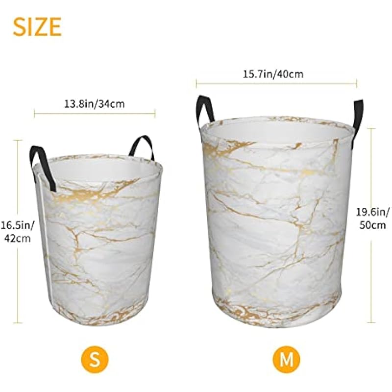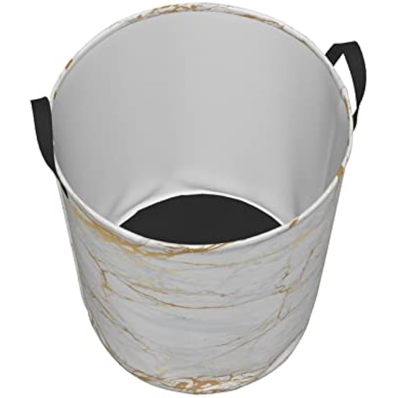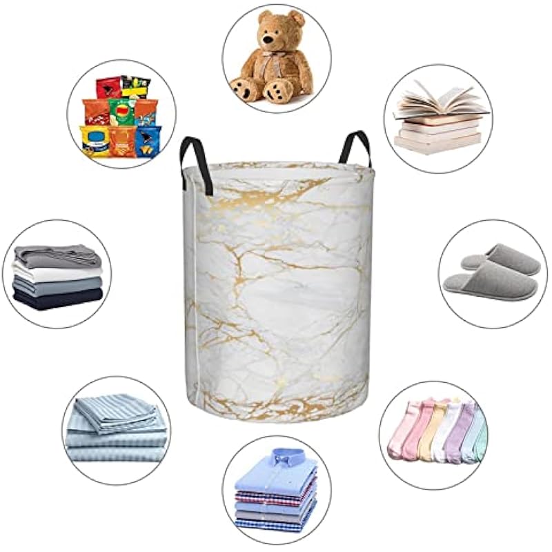 38l Round Laundry Hamper Golden Marbling Texture Storage Basket Waterproof Coating Organizer Bin For Nursery Clothes Toys