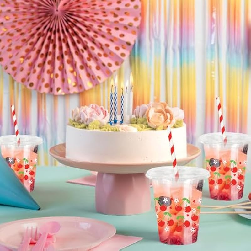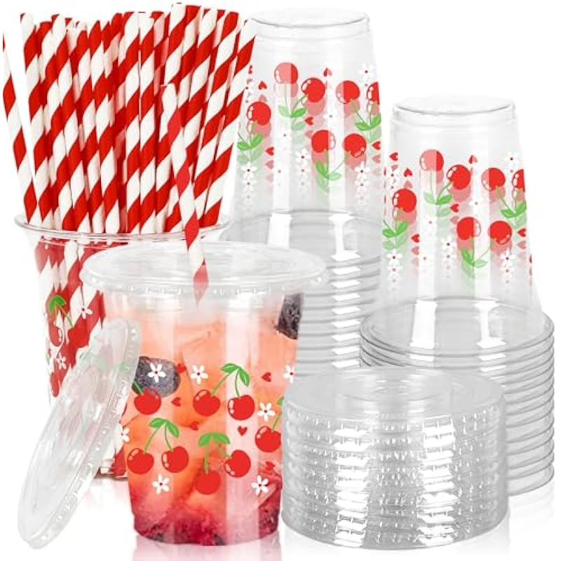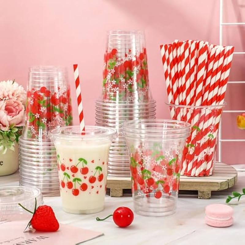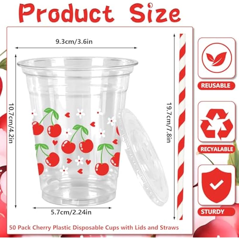 Be the first to review “50Pcs Cherry Plastic Cups with Lids and Straws Red Cherry Flower Heart Clear Plastic Cups 12oz Disposable Cups for Daily Holiday Party Supplies” Cancel reply