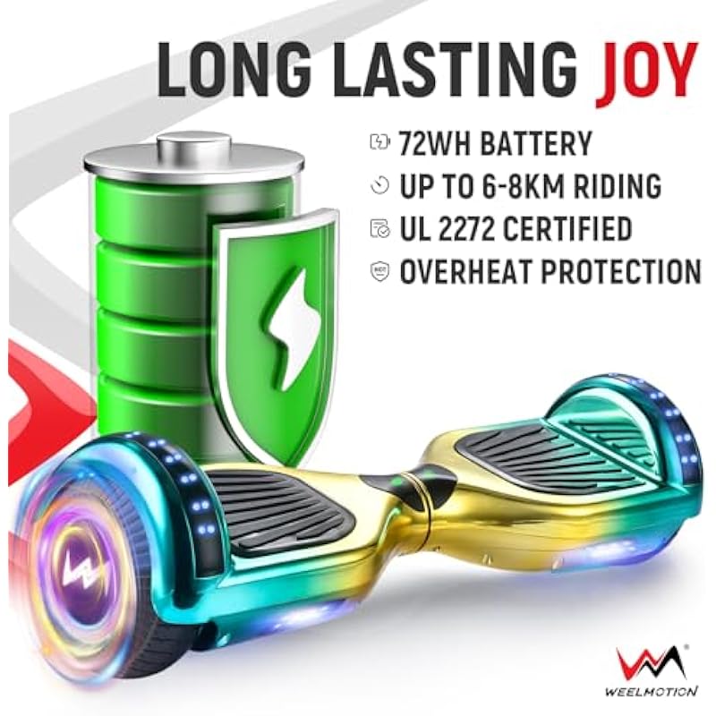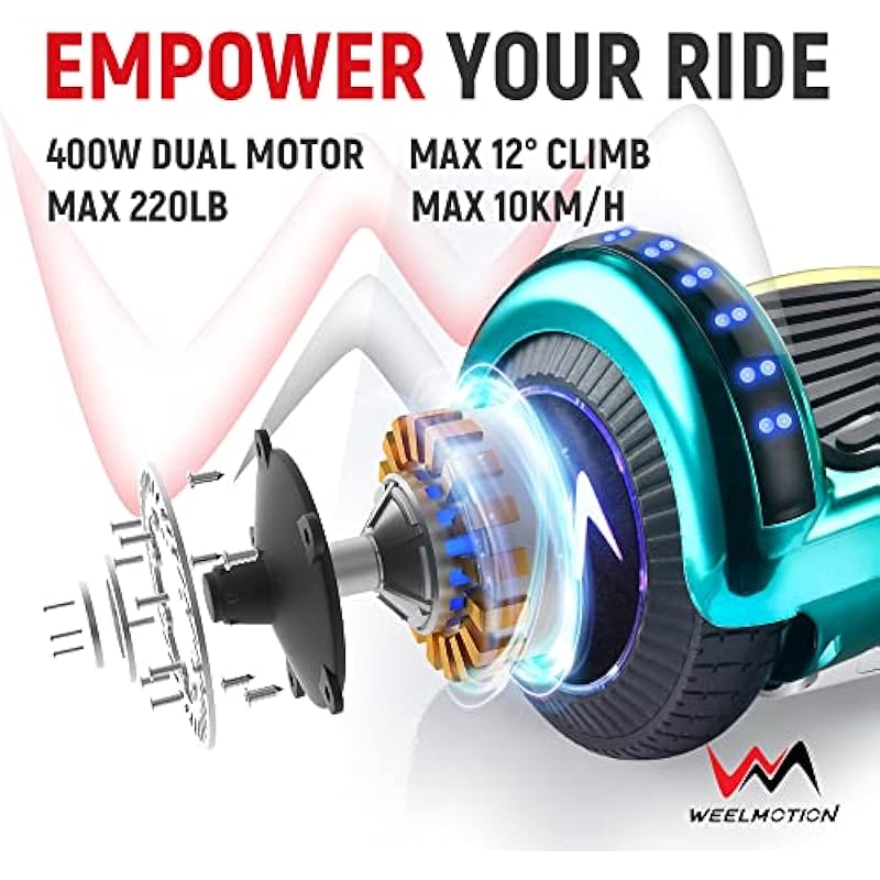 - 🎁 Ideal Holiday Gift: The WEELMOTION Hoverboard makes an exciting gift for Christmas, birthdays, or any special occasion. A fun way to create lasting memories with family and friends.
