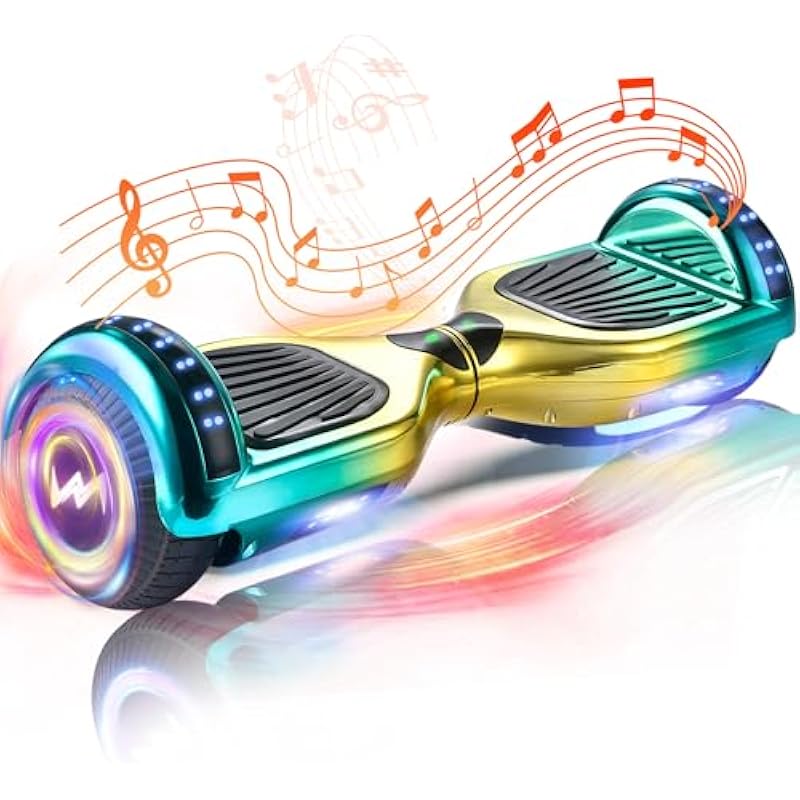 6.5 Chrome Hoverboard with Shining All Terrain Wheels, Vibrant Lights & Music Speaker; UL2272 Certified with Hover Board Bag, Max Range up to 8 kms
