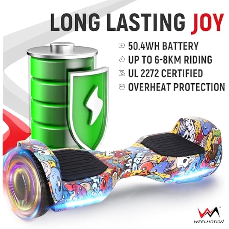 - ✔️ Safety: All WEELMOTION hoverboards have been UL 2272 certified and passed strict battery and charger tests to ensure rides’ ultimate safety. Build-in no fall technology ensure riders’ safety and make it easier for beginners. Multiple security measures have been incorporated such as Overheat Protection, Short Circuit Protection, Fire Protection Shell and Over-speed alert