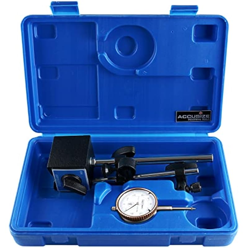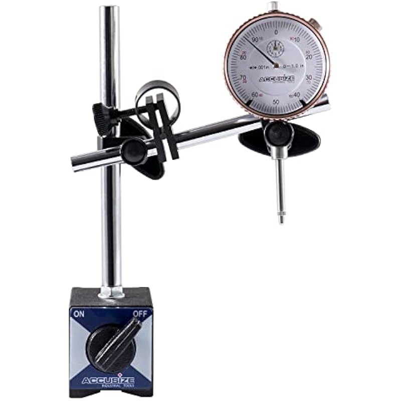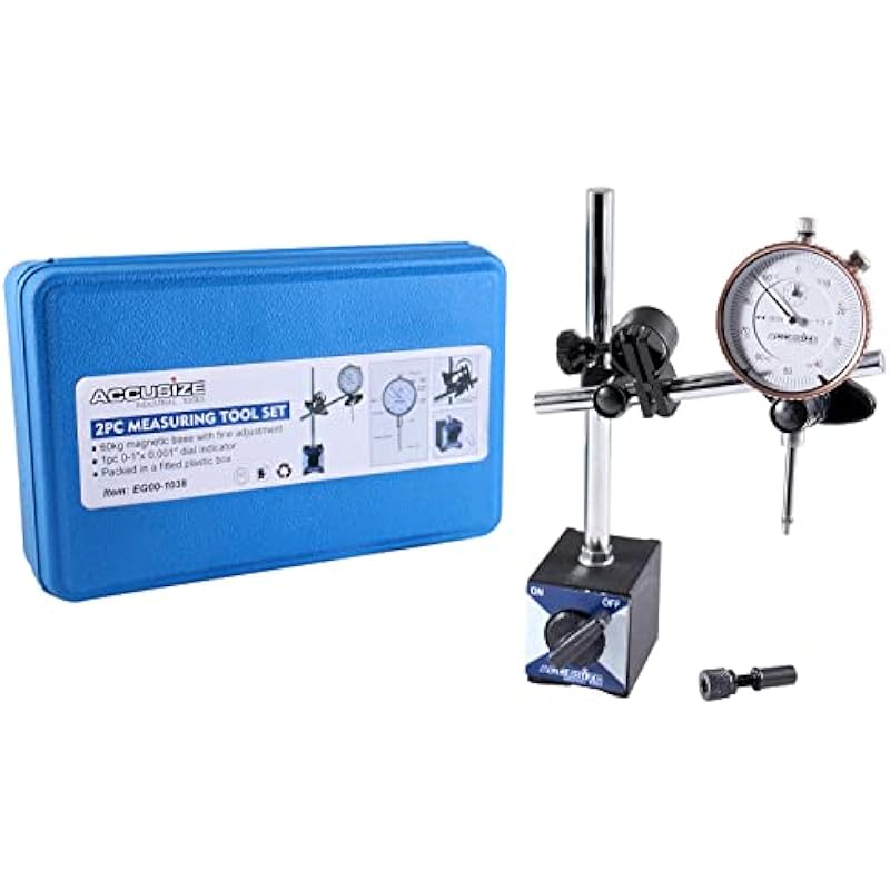 Accusize Industrial Tools 0-1 inch x 0.001 inch Dial Indicator with Magnetic Base Set, 60 Kg Capacity, Eg00-1038…