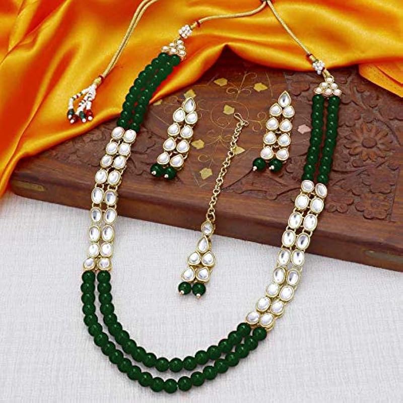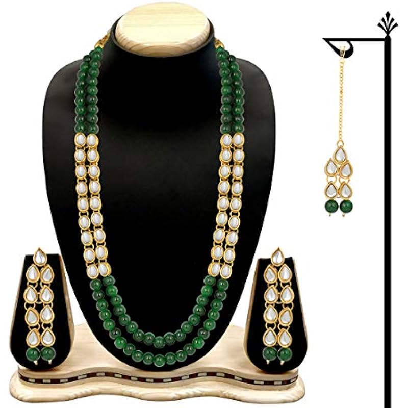 Aheli Bollywood Party Wear Long Beaded Necklace Set with Maang Tikka Indian Ethnic Jewellery Gift for Women