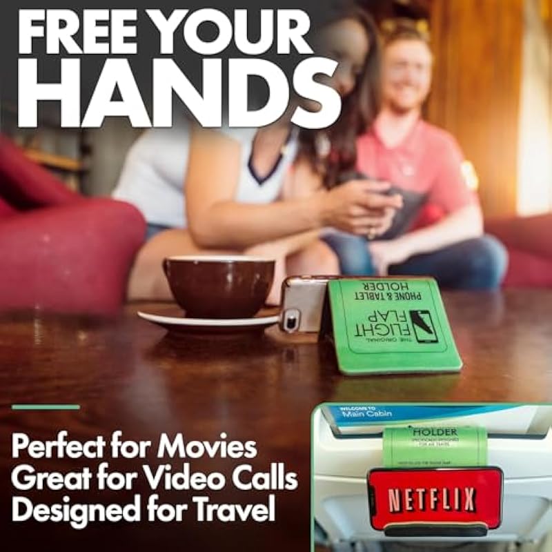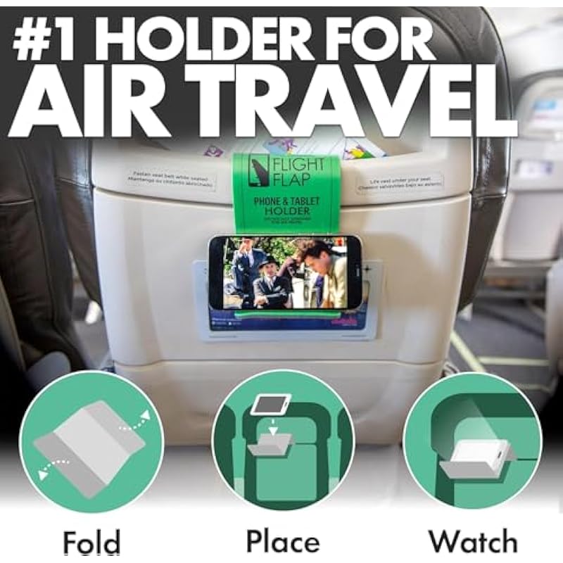 - USE FOR TRAVEL, WORK & LEISURE – Great for watching movies, entertaining kids, streaming workouts, hosting a zoom video call, or cooking with recipes on your phone. Use the FLIGHT FLAP cellphone holder anywhere to grip your device and view your content comfortably. Attaches to most airline seat backs and tray tables. During car rides, attach behind the headrest and stream movies for kids. Properly positions your phone or tablet to host zoom meetings.