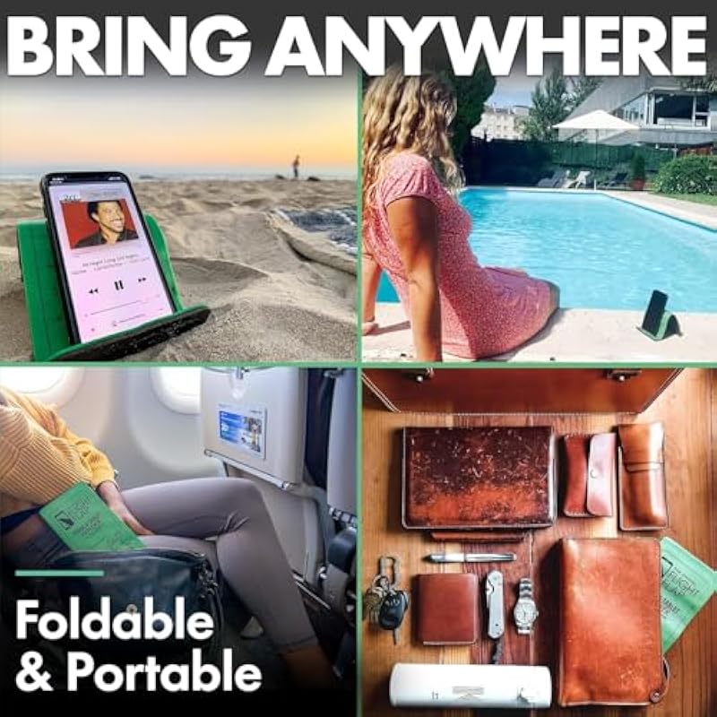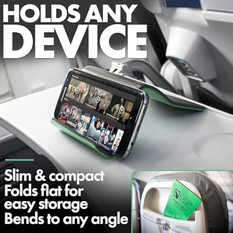 Airplane Phone Holder, Flexible Cell Phone Holder, Folding Cellphone Stand for Desk, Bed, Office, Treadmill – Airplane Accessories Long Flight Travel – Plane Essentials (Original Green)