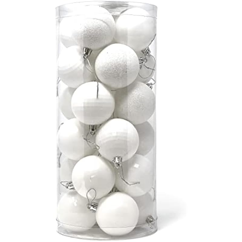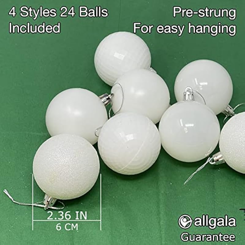 Allgala 24 PK 2.33 Inch (6CM) Christmas Ornament Balls for Xmas Tree-4 Style- (White)