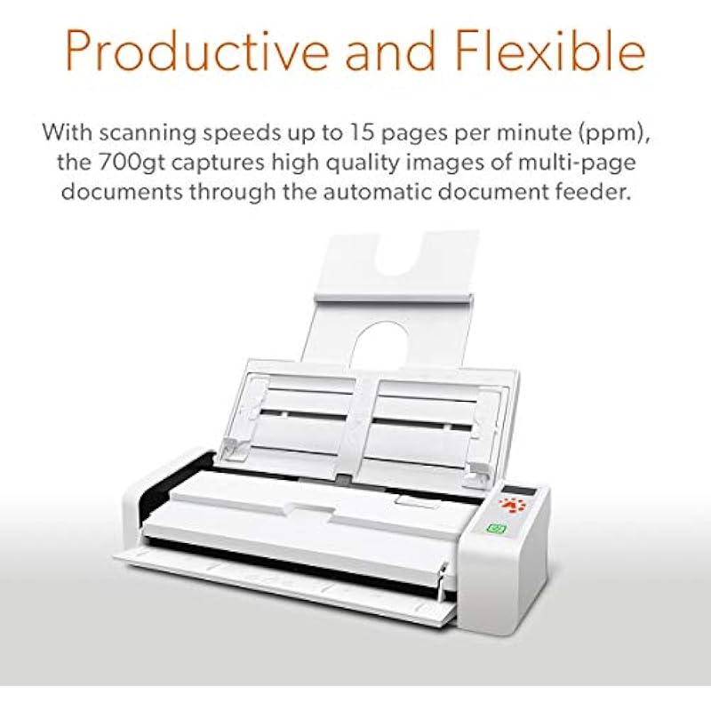 - Productive and flexible ADF: with scanning up to 20 pages per minute (ppm), The 700gt captures high quality images of multi-page documents through the automatic document feeder. Provides front and rear side loading options for card scanning.