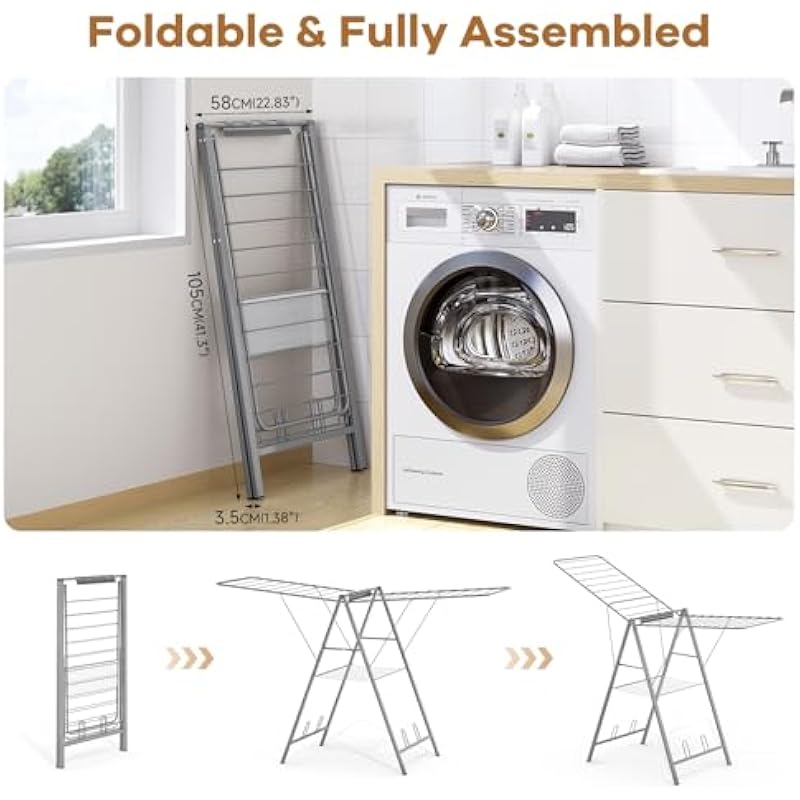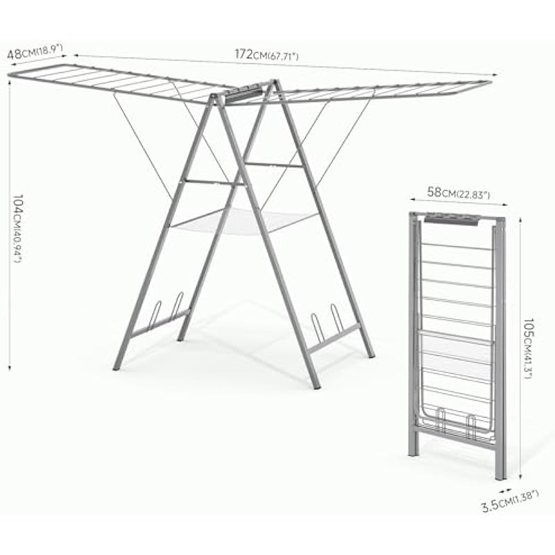 - No Installation Required: This clothes drying rack comes fully assembled and ready to use straight out of the box. Say goodbye to complicated installations and start enjoying convenient drying immediately.