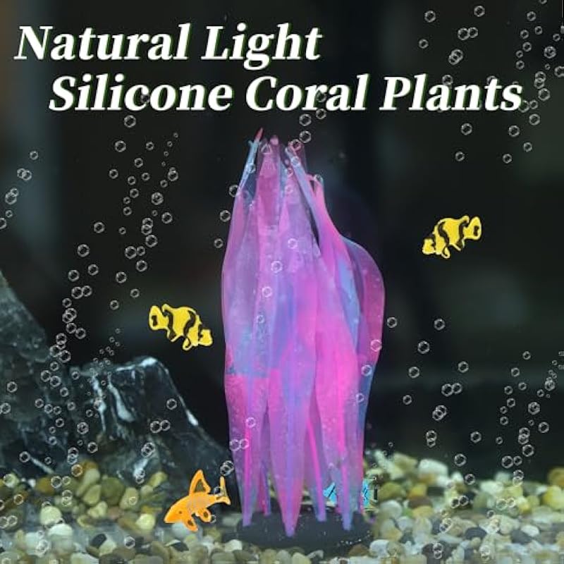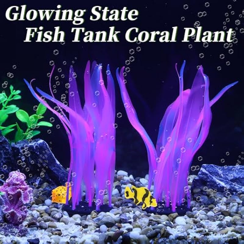 - Feature – Glowing silicone coral plants can add color to your fish tank. Its brilliant colors sway gently with the water flow. Make your fish tank full of life, decorate different ocean worlds. Fish can shuttle and hide in the water, increasing the fun of fish playing