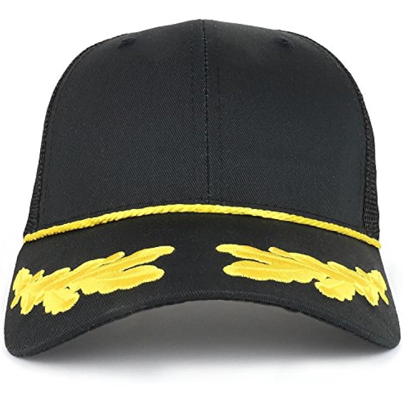 Armycrew Captain Oak Leaf Embroidered Trucker Mesh Cap with Yellow Rope