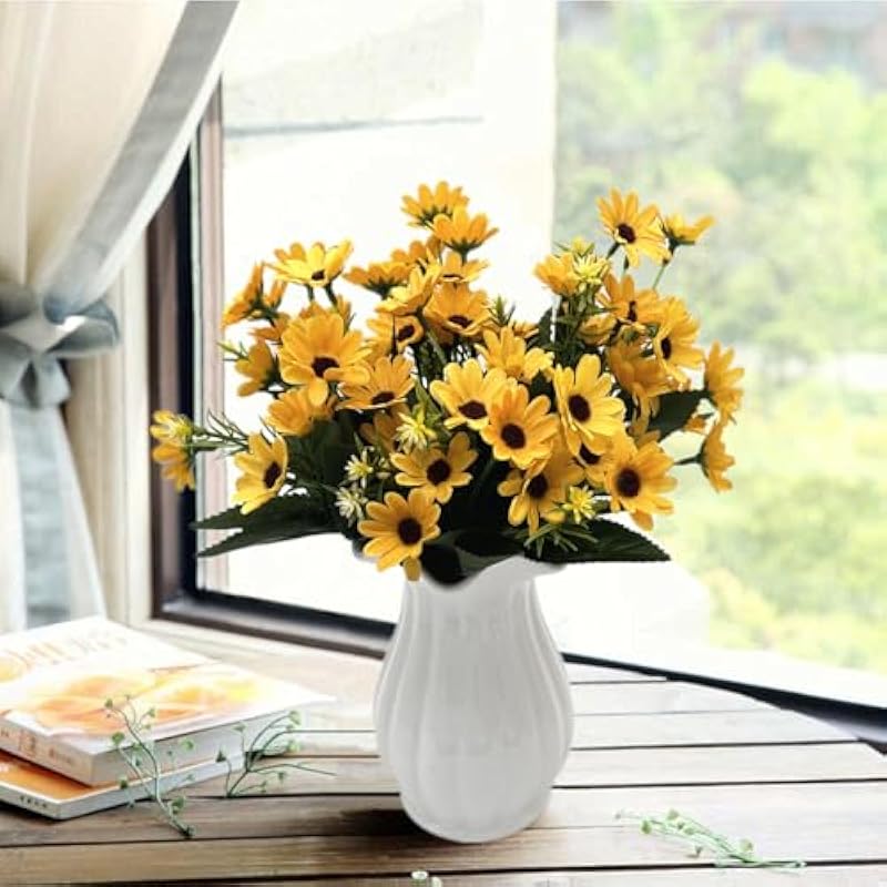 Artificial Flowers Daisies for Outdoors Silk Daisy Realistic Plants Decor, Fake Plant Bunches for Indoor Home Garden Verandah Kitchen Office Table Centerpieces Arrangements DIY Decorations Blue Flower