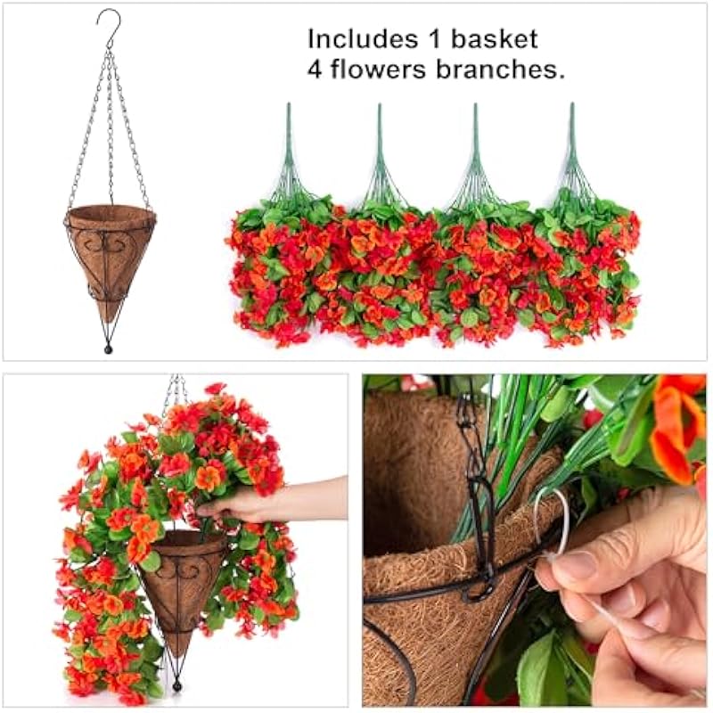 - Material: The basket are made of Wire and coconut, the flowers are made of quality silk and plastic and have a real touch. Resistant to ultraviolet light and not easy to fade