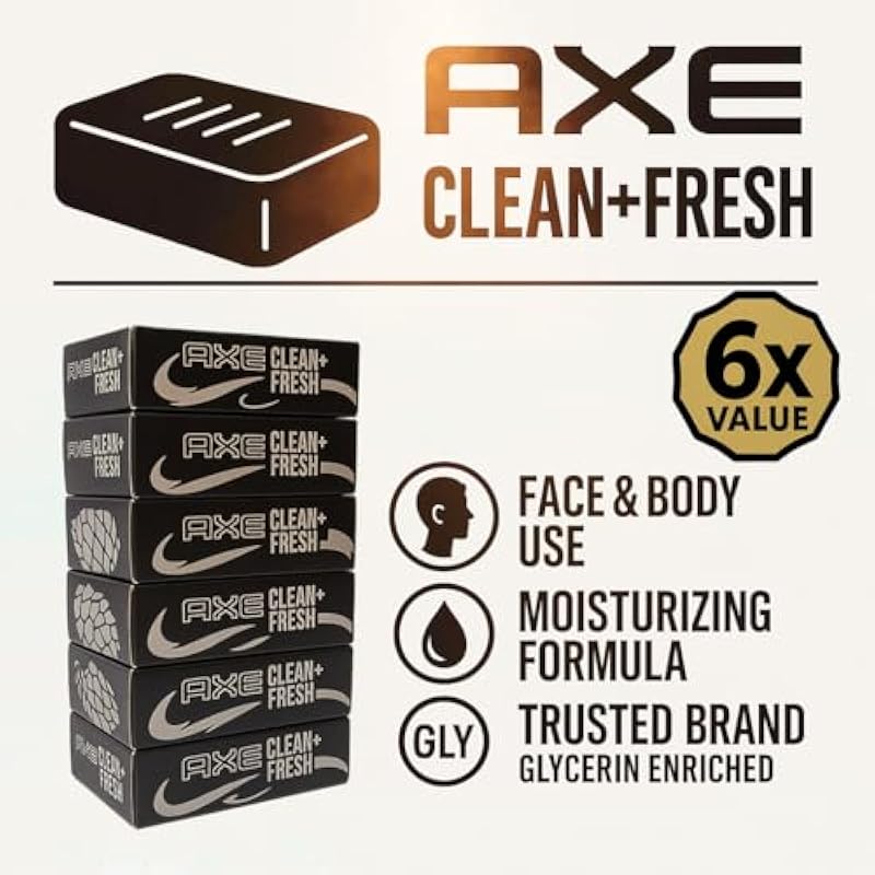 AXE Clean + Fresh Menβs Bar Soap, Cedarwood Scent, Face and Body Moisturizing Soap, 6 Bar Bundle, 3.5 oz Each