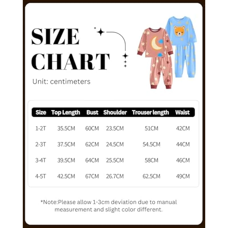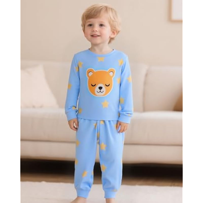 Baby Boys Pajamas for Kids 4 Piece Pjs Set Luminous Pattern Long Sleeve Sleepwear Toddler Pyjama Sets