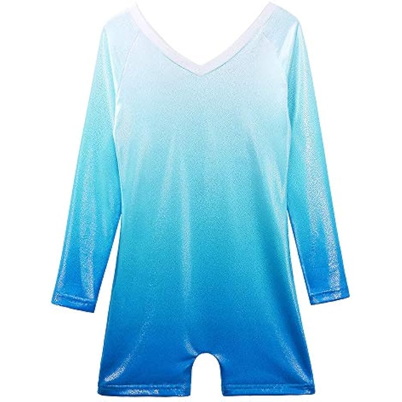 BAOHULU Leotard for Girls Gymnastics Toddler Sparkle Stripes Tank Biketards One Piece, Shiny Gradient Blue, 6-7 Years