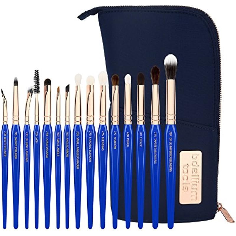 Bdellium Tools Professional Makeup Brush Golden Triangle Eyes Only – 15pc. Brush Set with Stand-Up Pouch