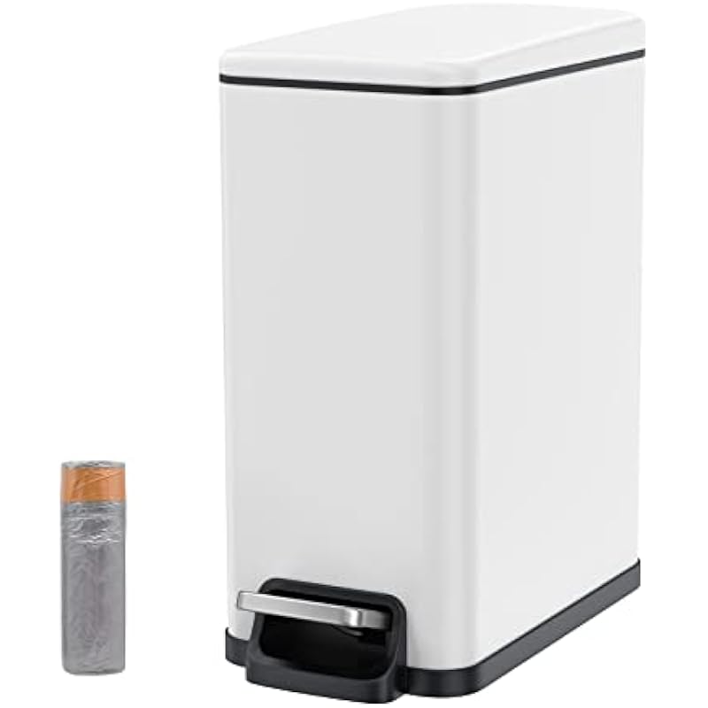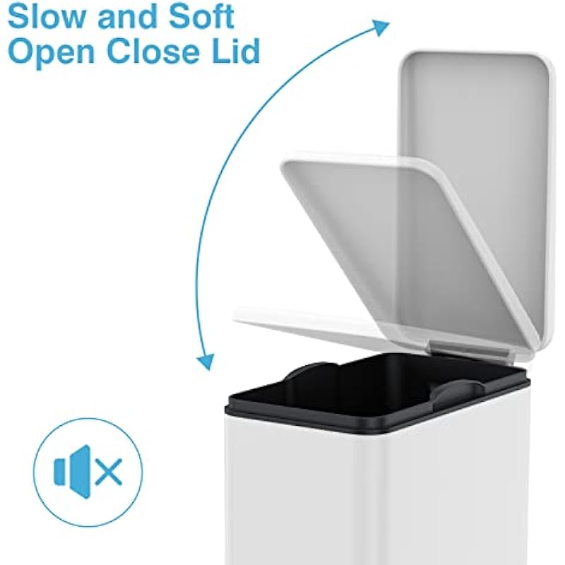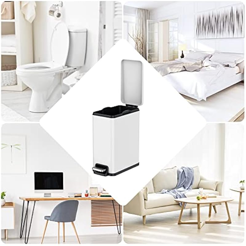 BETHEBEST Bathroom Trash Can with Lid Soft Close,Foot Pedal Garbage Can with Removable Liner Bucket, 2.6 Gallon Rectangular Step Trash Bin for Bathroom,Bedroom,Office (White)