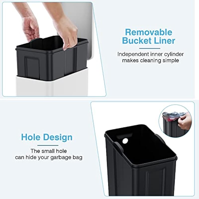 - STRONG STEEL PEDAL:This trash can has strong steel pedal which is engineered to last over 150,000 steps