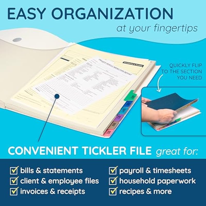 - Versatile Paperwork Sorter – From tax time to schoolwork, this monthly accordion file organizer doubles as a portable document sorter or tickler file system to reduce clutter anywhere.