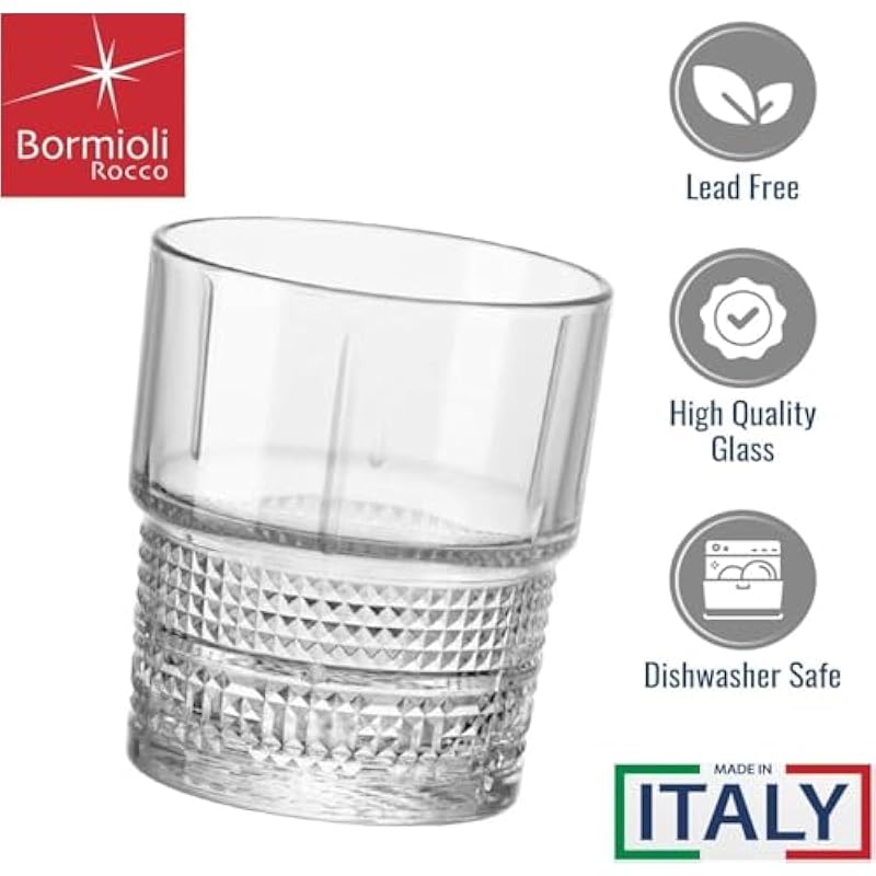 Bormioli Rocco Novecento Barware DOF Glass, Stackable, Set of 4, 12.5 oz, Clear, Vintage Design, Made in Italy.
