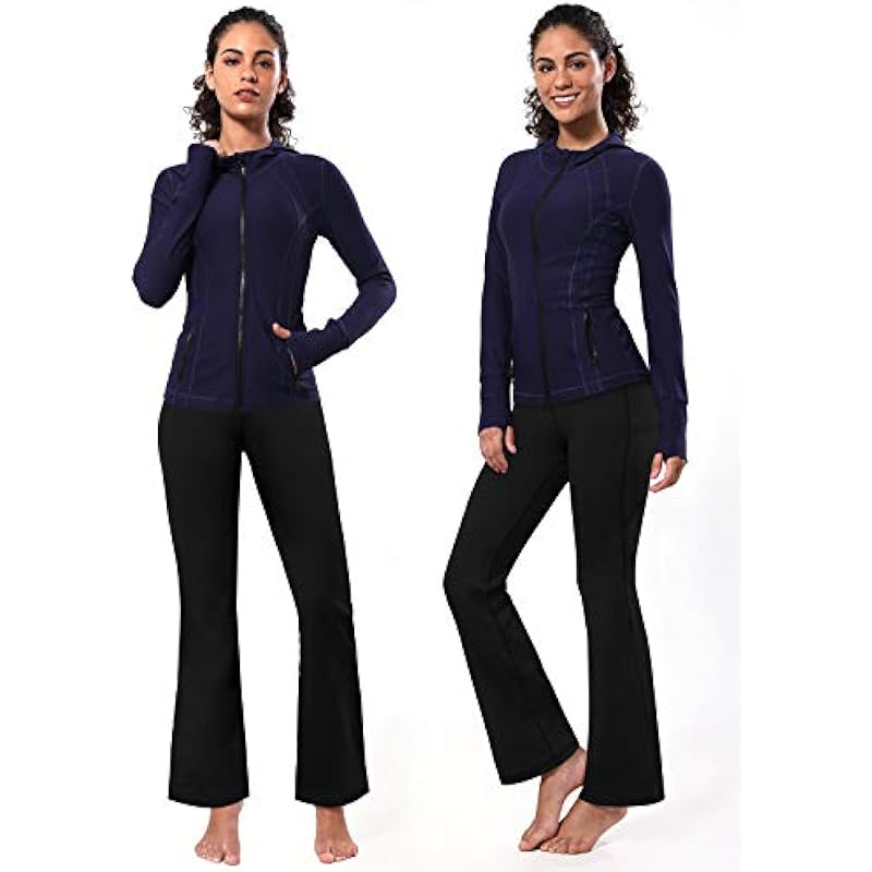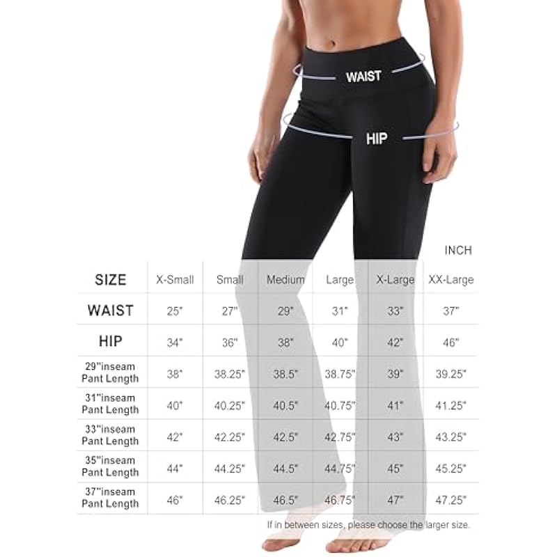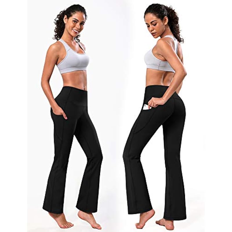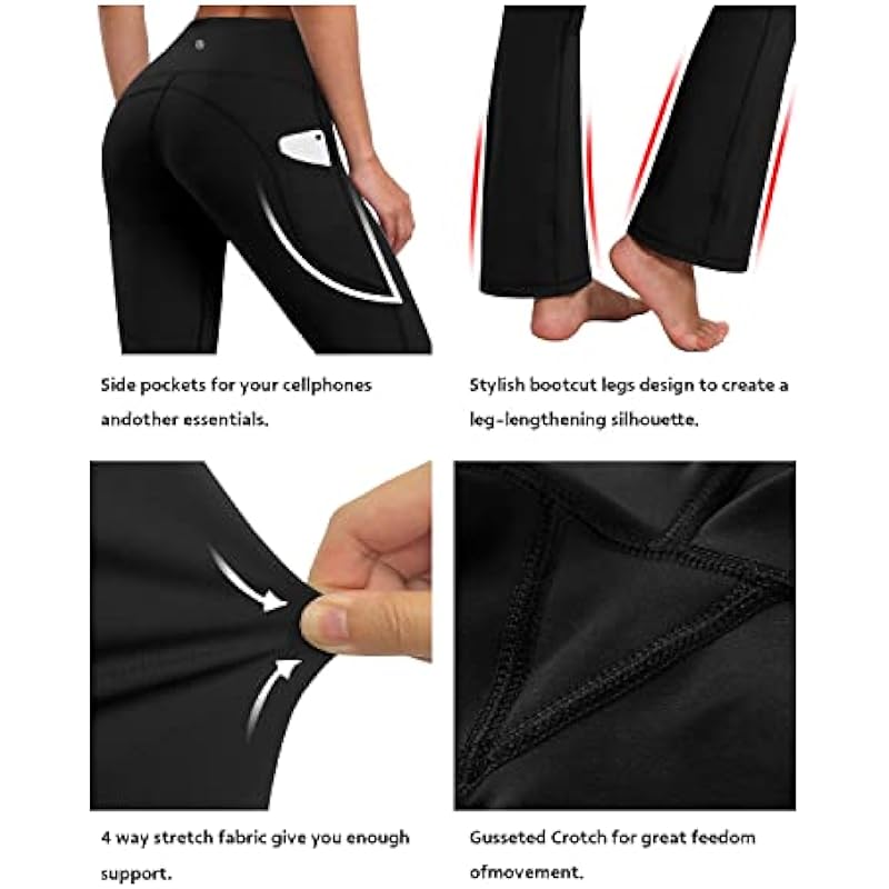 BUBBLELIME 29″/31″/33″/35″/37″ 3 Styles Women’s High Waist Bootcut Yoga Pants Basic/Side Pockets Tummy Control Workout Flared, Compression Feel Side Pockets_jetblack, Small