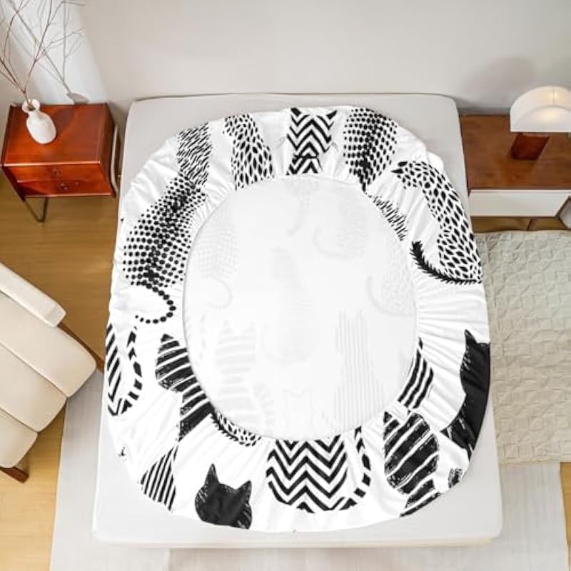 Be the first to review “Cute Cat Pattern Fitted Sheet Queen Size Cat Silhouette Bedding Set Black and White Sheet Set,Striped Polka Dots Bed Cover Ultra Soft Breathable Bedspread 3 Pcs for Kids Teens Boys” Cancel reply