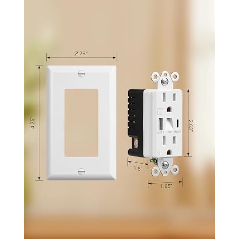 - [Easy to Install] This 15A 125V 60Hz dual power outlet with USB ports features both back and side wiring, making installation a breeze; fits into standard wall boxes and comes with a white wall plate and screws