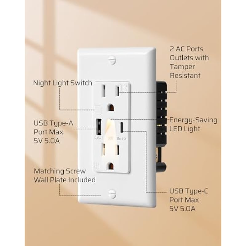 Be the first to review “DEWENWILS USB Outlet with LED Night Light, 5V 4.8A Tamper-Resistant USB Wall Outlets with USB-A & USB-C Ports, Wall Plate for Kitchen, Bathroom, Office, White” Cancel reply
