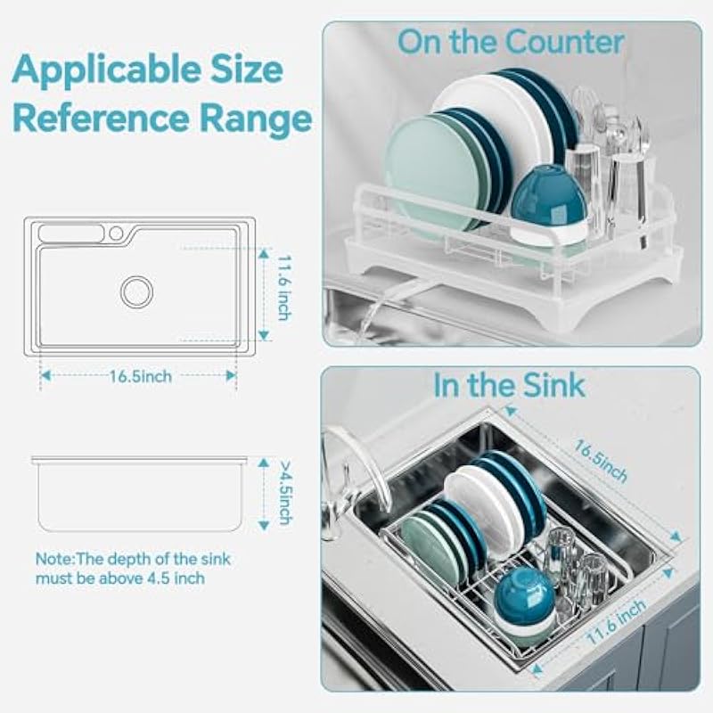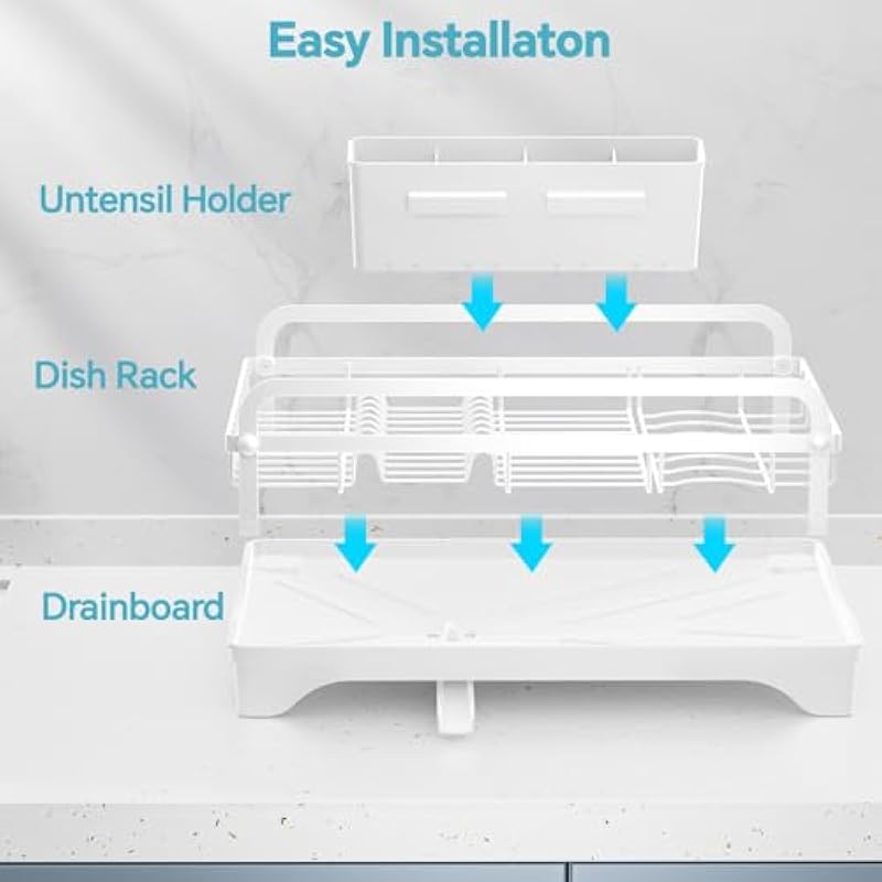 - Easy Install & Space Saving: No tools, dish drain rack has a simple installation design. It only takes a few minutes to install a dish drainer rack by referring to the instructions. The kitchen rack for dishes making full use of the kitchen space