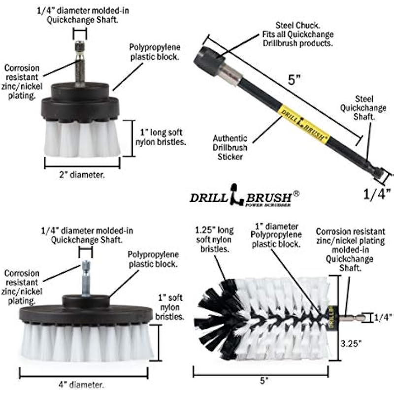- These scrub brush drill attachments will work as an automotive cleaning brush. This drill brush set includes 4 brushes in varying sizes to make sure you have the right drill scrubber attachment for the job