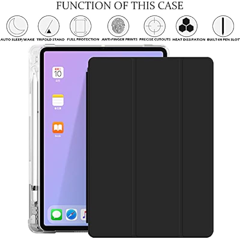 DuraSafe Cases for iPad 10.2 Inch 9 8 7 2021 2020 2019 [ iPad 9th / 8th / 7th Gen ] A2197 A2270 A2602 Smart Magnetic Trifold Pencil Holder Transparent Soft Silicone TPU Back Cover – Black