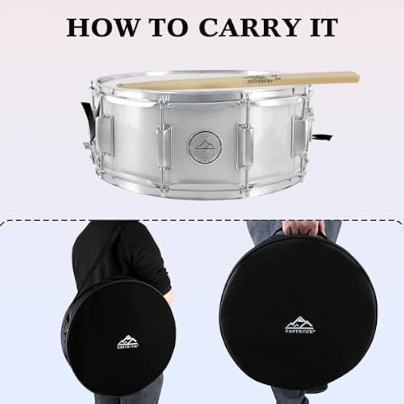- Package Included: Include a 14×5.5 inches snare drum with Coated drum Head, a padded gig bag, a pair of sticks, a drum key and two adjustable neck-strap. Durable oxford cloth snare backpack, it can protects your drum very well