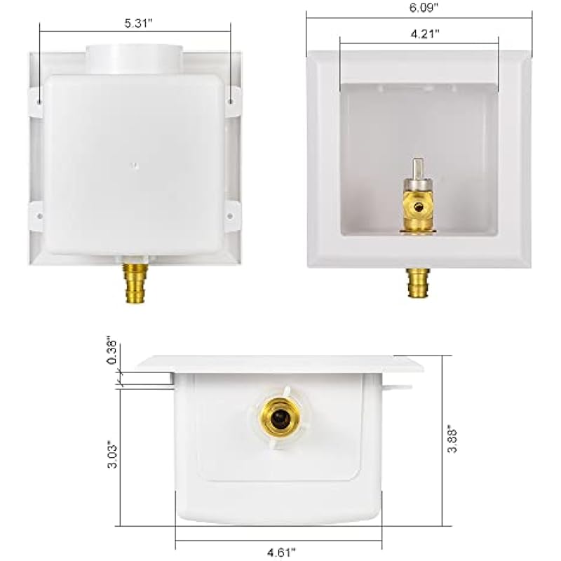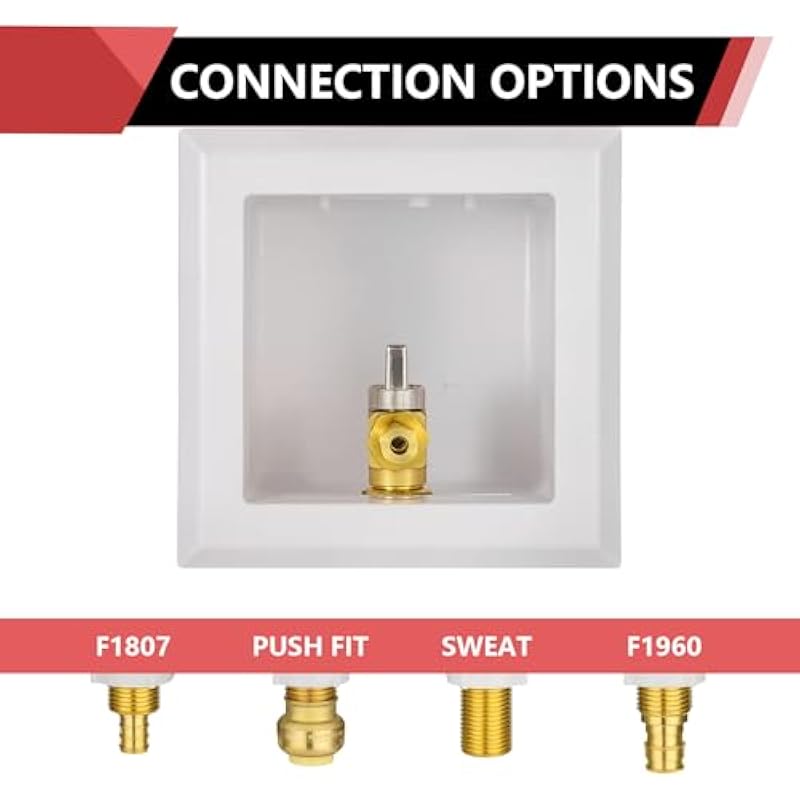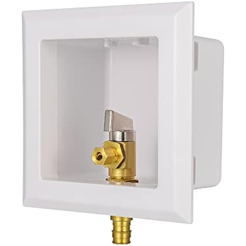 EFIELD Pex Pre-Assembled Ice Maker Outlet Box, 1/2-Inch Pex F1807 Crimp with Installed 1/4-Turn Ball Valve, White (Stainless Steel Hammer Arrestor),(IM012)