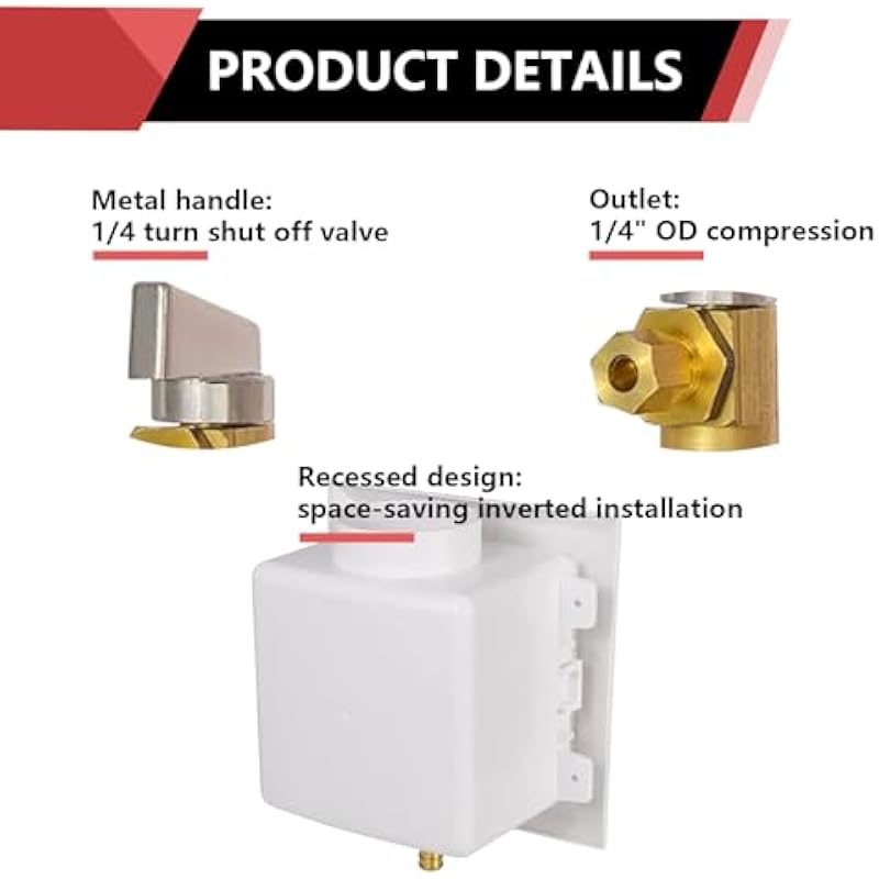 EFIELD Universal Ice Maker Box,1/2-Inch Cold Expansion Pex-A Inlet Connection with Installed 1/4-Turn Ball Valve (Expansion Pex-A),(IM017)