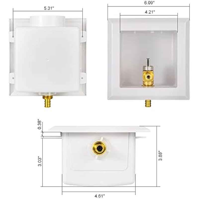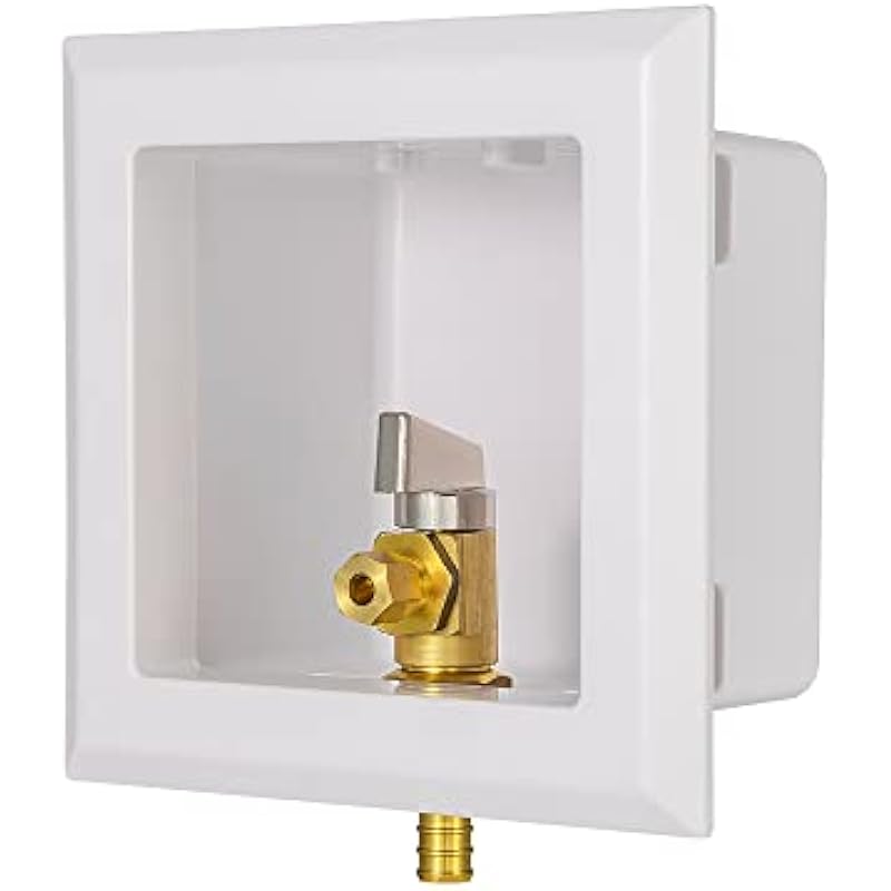 EFIELD Pex Ice Maker Outlet Box, 1/2-Inch Pex F1960 Expansion Fitting Connection with Installed 1/4-Turn Ball Valve, White, with Copper Arrestor,(IM008)