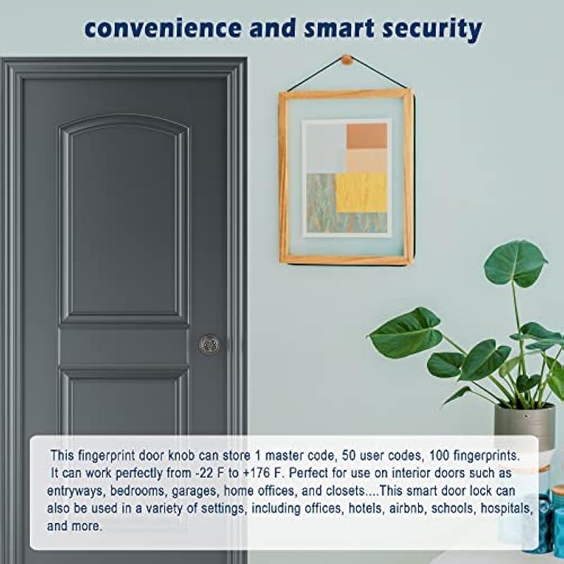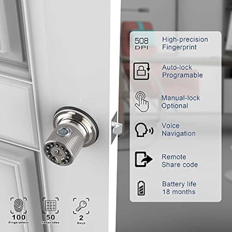 - Multiple Unlocking Options👈 This smart fingerprint door lock offers 3 ways to unlock: fingerprint,password,and keys(100 finger prints,50 user codes,2 keys).The biometric door lock features a high-resolution 508dpi fingerprint sensor,it can quickly and accurately identify registered fingerprints.It’s smarter and securer,ideal for home,bedrooms,garages,reading rooms,offices,hotels,airbnb,schools,and more.