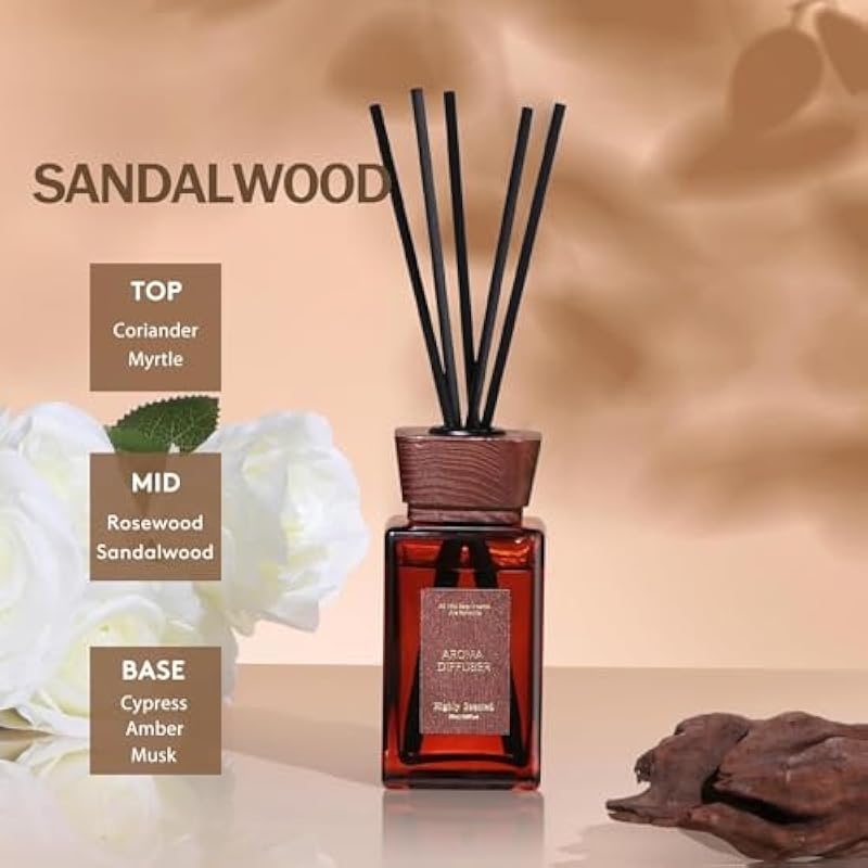 GAGINGOOLD Reed Diffuser Set, 5.2 oz Sandalwood Scent Reed Diffuser with Sticks, Reed Diffusers for Home Bedroom Apartment Bathroom Decor, Gift for Home Fragrance