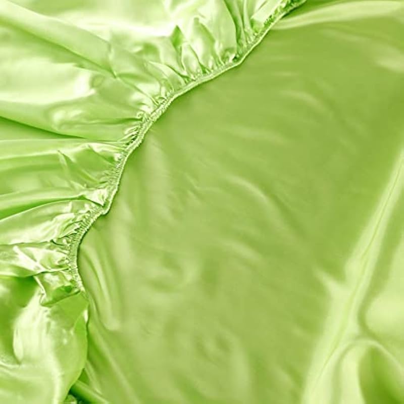 Girls Satin Bed Sheet Set Queen Green Silk Like Satin Bed Sheets Ultra Soft Luxury Bedding Set For Teens Women Bedroom Decor Chic Luxurious Sheets (1 Flat Sheet+ 1 Fitted Sheet + 2 Pillow Cases)