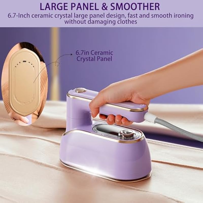 - Security Design: The handheld iron has an enlarged ceramic panel that evenly distributes heat, ensuring smooth ironing without damaging clothes. The 150ml anti drip large water tank can safely iron all family clothes in one go, and the heat-insulating base can also effectively prevent burns