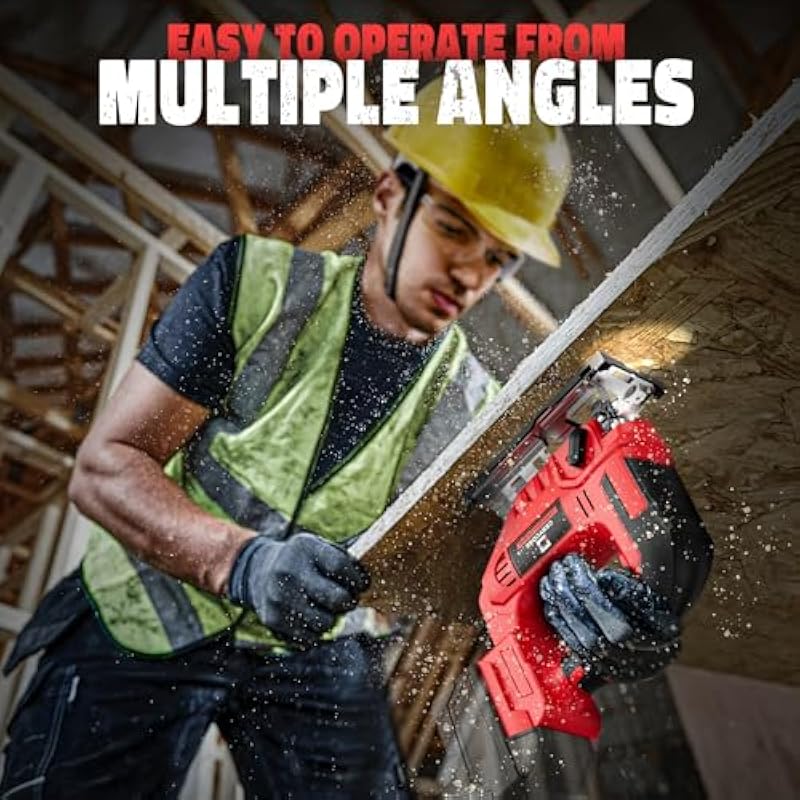 - Brushless Motor & Cordless Powered: With powerful brushless motor, the jigsaw for Milwaukee features a heat resistance low voltage and overload protection. The jigsaw for Milwaukee generate power output 750w up to 2900 rpm for efficiency performance. With cordless design, the cordless jigsaw is compatible with Milwaukee 18v battery. The jigsaw tool cordless offers portability, perfect for confined spaces ensuring wire-free operation.