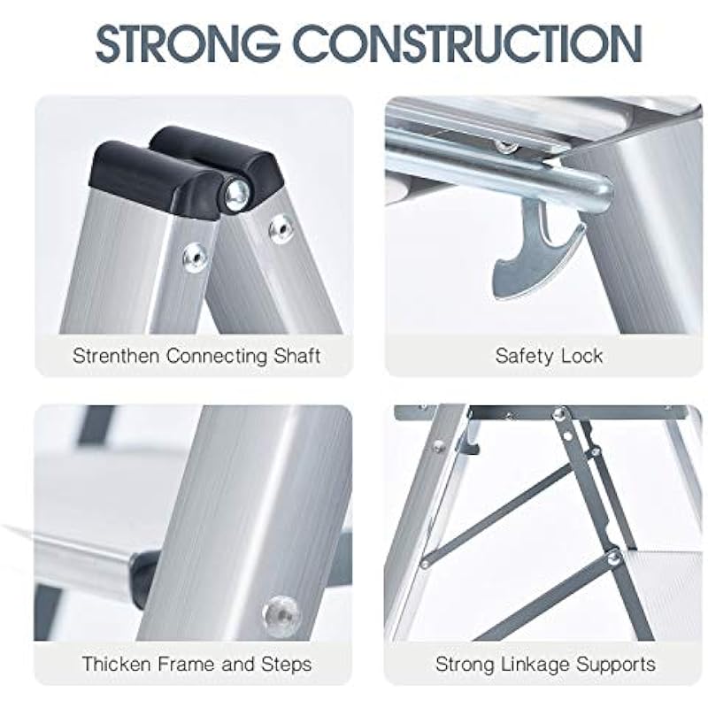 - 【Durable Aluminum】The step ladder is made of sturdy aluminum,it’s lightweight and anti-rust.Unlike plastic and wooden step ladders,it has long-lasting durability to prevent corrosion,breakage,rotting.