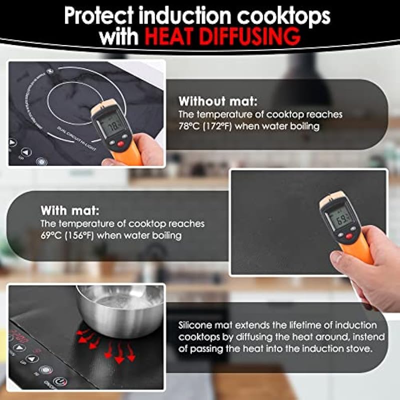- Safe Cooking And Easy Maintenance – The non-slip texture of the mat securely holds the pan in place during cooking, avoding accidents and ensuring stability. This flexible and durable stove cover is easy to clean, simply wipe the mat with a damp cloth or sponge to remove spills and stains. It is also dishwasher-safe for convenient storage.