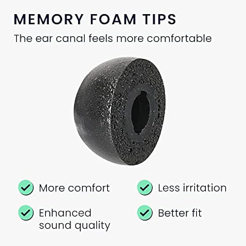 - SPARES: Replacement set of 6x memory foam earbud cover tips in black for in-ear earphones