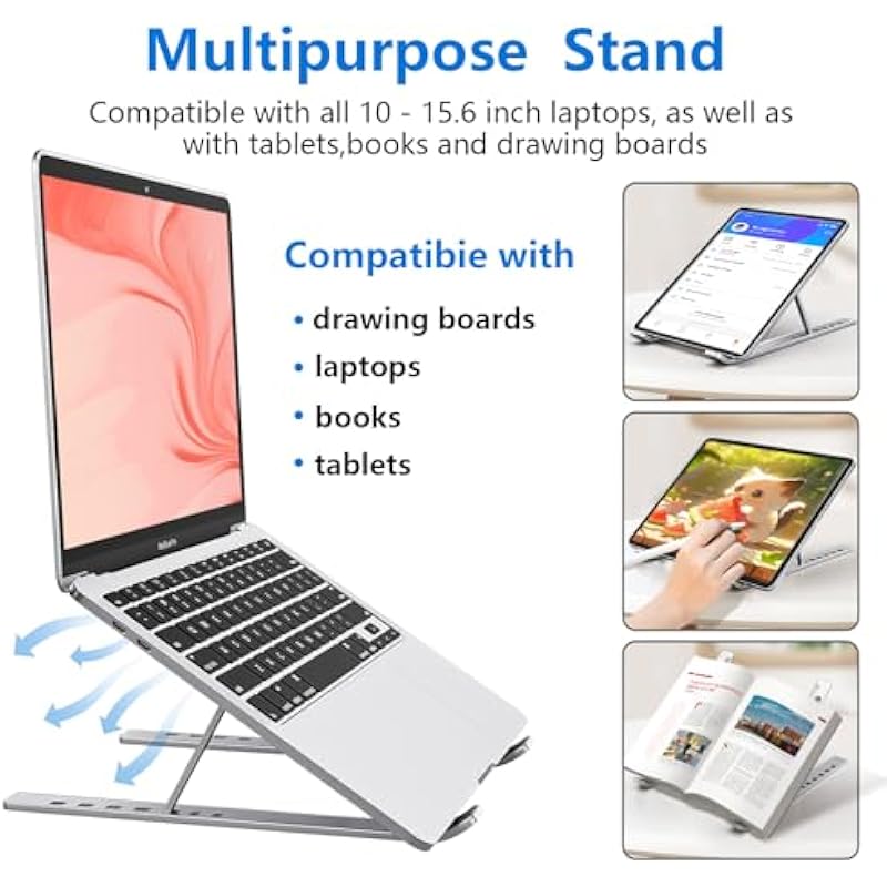 - Wide compatibility: The aluminum metal notebook holder is suitable for laptops ranging from 10 to 15.6 inches, such as MacBook Air, Dell XPS , as well as various types of phones, tablets, drawing boards, and books.