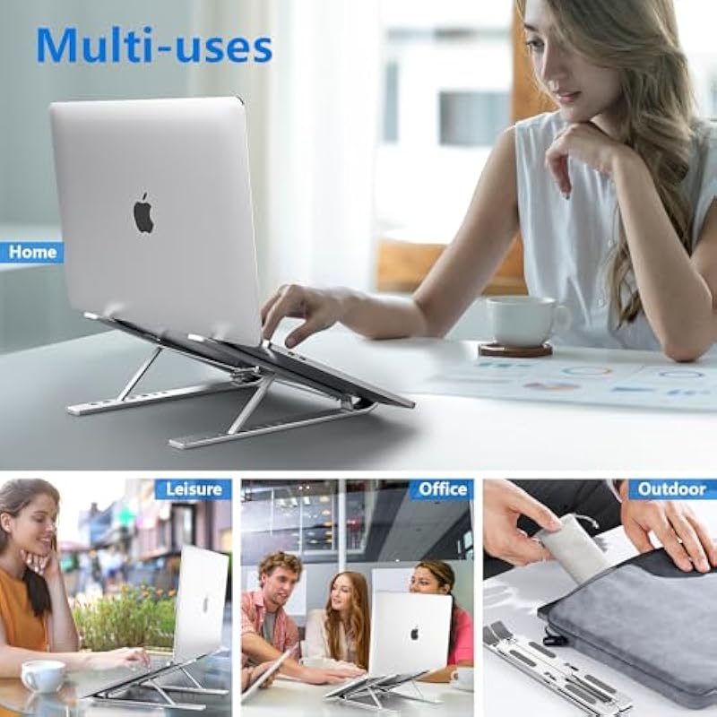 Laptop Stand for Desk, Aluminum Metal MacBook Stand,Computer Riser for Desk, Portable Foldable Adjustable Notebook Holder, Compatible with 10-15.6 Inch Laptops, iPad, Silver.