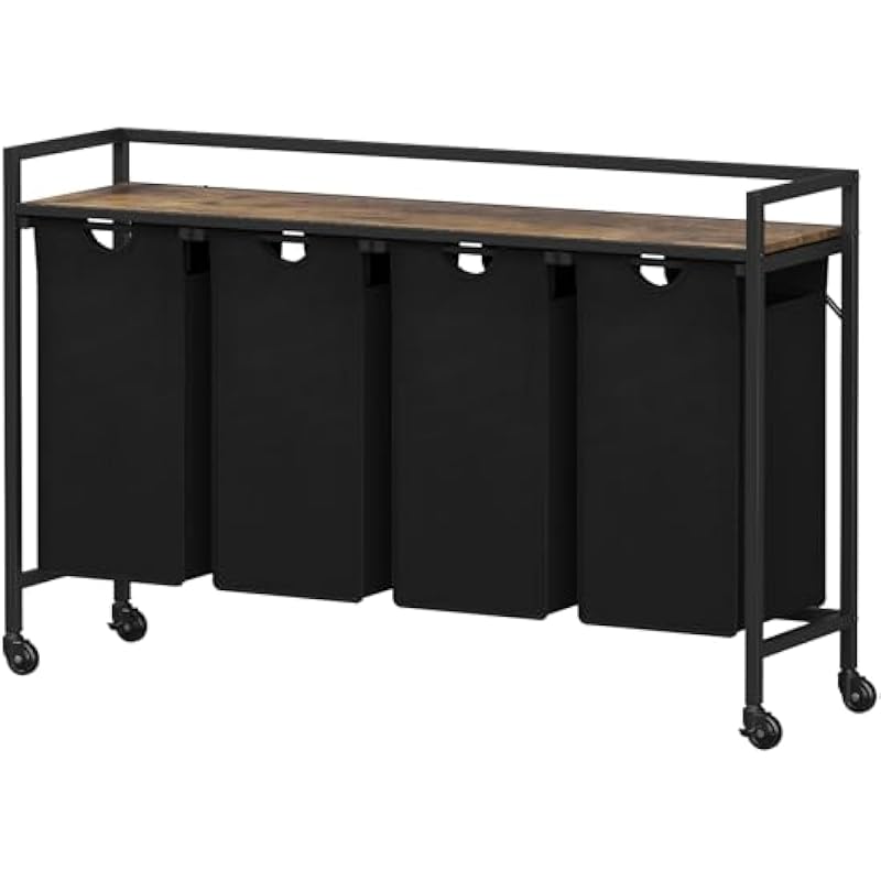 Lifewit Laundry Hamper 4 Section, XXL Pull Out Laundry Basket with Wheels, Tall Rolling Clothes Basket Organizer with 4 Removable Laundry Bags, Laundry Sorter for Laundry Room, Rustic Brown and Black
