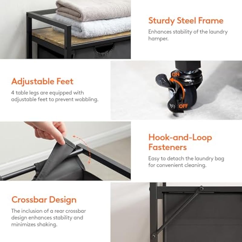 - Pull-out Design & Removable Bags: Our laundry hamper with wheels features a user-friendly hook-and-loop design that allows for easy access to the laundry bag. You can simply open the hook-and-loop to remove the bag or pull it out entirely. The removable hamper bag includes a bottom panel that prevents sagging and helps to maintain its shape.