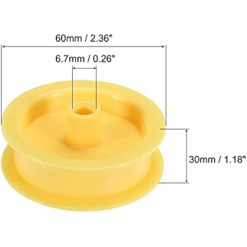 - Color: Yellow; Height: 30mm / 1.18″; OD*ID: 60mm x 6.7mm / 2.36″ x 0.26″; Groove Width: 14.5mm / 0.57″.