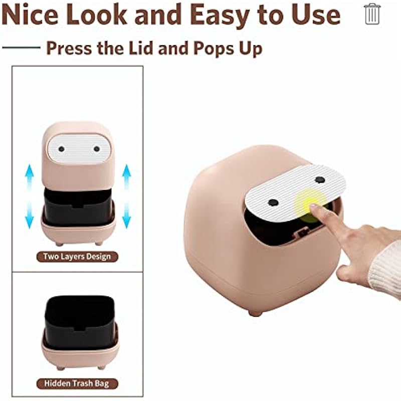 - ❤【Desktop Trash Can with Lid】 The new mini trash bin with lid can effectively reduce the spread of odors and isolate fruit flies. Beautiful hidden trash bag and Ninja design style, it can even become the perfect decoration for your desktop!